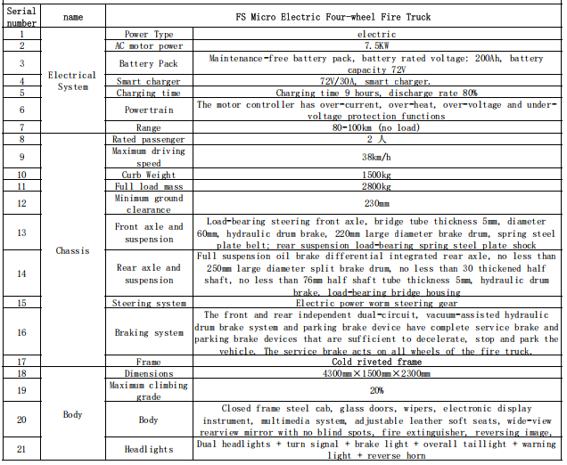 Com zero emissões e baixos níveis de ruído, é adequado para áreas sensíveis como áreas residenciais. Seu tamanho flexível permite penetrar em áreas estreitas. Seus baixos custos de aquisição e operação facilitam sua manutenção. O equipamento é adequado para incêndios em estágio inicial e pode ser manuseado rapidamente. Também pode ser usado para patrulhas, publicidade e assistência de emergência, tornando-se uma ferramenta altamente eficaz para combate a incêndios de base.