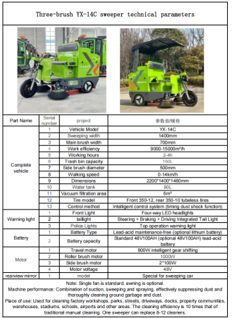 Desempenho da máquina: Combinação de sucção, varredura e pulverização, suprimindo efetivamente a poeira e limpando completamente o lixo e a poeira do solo.