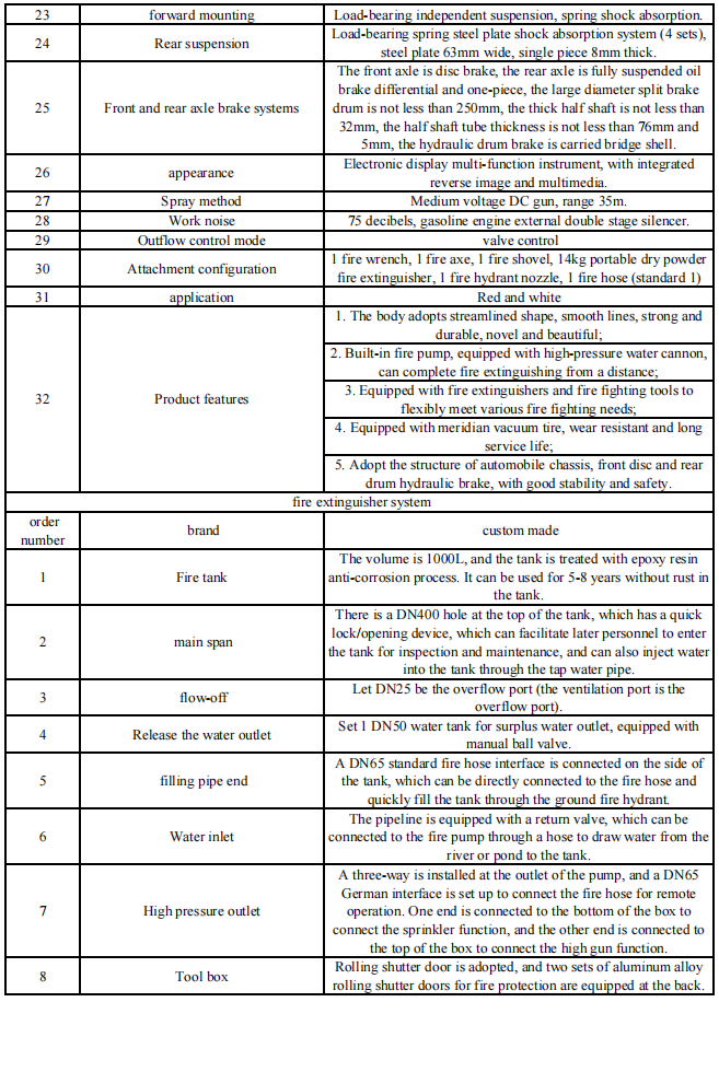 Está perfeitamente adaptado às necessidades de combate a incêndios de pequenos locais, como comunidades urbanas, vilas e aldeias, parques pitorescos, etc. Pode não só lidar eficientemente com incêndios iniciais, mas também realizar inspeções diárias de prevenção de incêndios e funções publicitárias. É um equipamento importante para a construção de um sistema de combate a incêndios de base com "cobertura total e resposta rápida" e compensa efetivamente as deficiências de grandes caminhões de bombeiros no campo terminal de combate a incêndios.